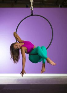 If you’re brand new to aerials and wondering where to start (they all look so good don’t they?), Aerial Hoops is definitely the easiest apparatus to learn for beginners. Don’t stress if you feel like you’re not strong or flexible or any of that kind of stuff that we all go through because guess what, you don’t need to be to get started! That’s what we do in these courses, work away slowly on getting you the muscles and the co ordination to do all the cool stuff! We guarantee that no matter what your age or fitness level, we will be able to get you up in a hoop on your very first lesson and leaving feeling super surprised at how easily you smashed everything in the class!